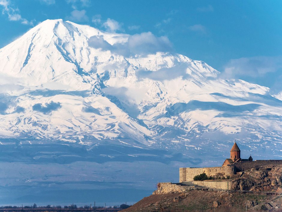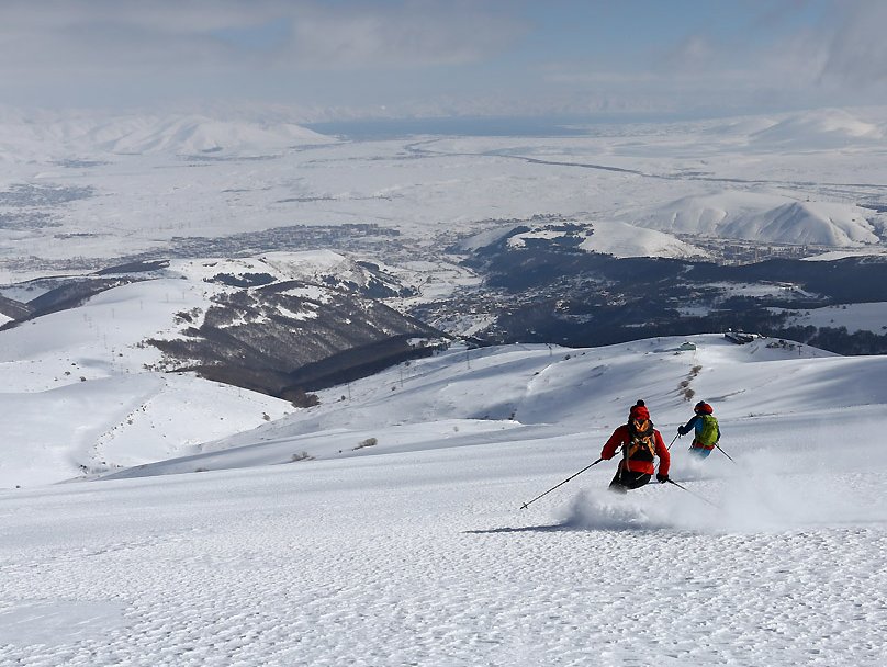 Avec 90% de son territoire situé au dessus de 1000 mètres, l’Arménie offre un très bon enneigement hivernal grâce à son climat continental. Encore peu parcourue à skis, la destination reste confidentielle et les volcans qui nous attendent là bas seront vraisemblablement vierges de toutes traces. Face au mont Ararat (5165 m), nous skions de beaux sommets aux pentes régulières mais jamais extrêmes et aux dénivelés mesurés. Chaque jour, nous découvrons les vestiges d’une des plus anciennes civilisations du monde et l’accompagnement local nous permettra de mieux cerner l’histoire récente de ce pays qui a été confronté à tous les drames du XX siècle.